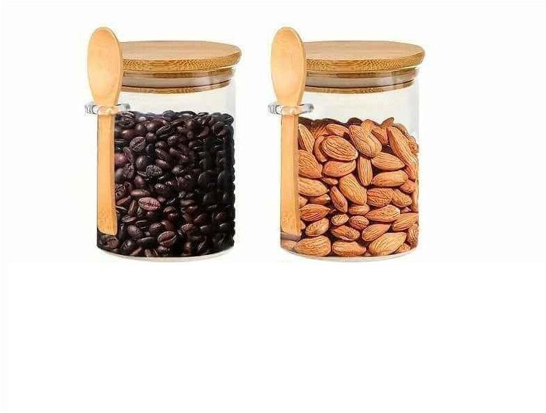 Newalor Prémium minőségű, 2 db-os boroszilikát üvegtartály készlet bambusz fedéllel és kanállal - 550 ml (NW21)