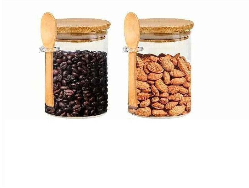 Newalor Prémium minőségű, 2 db-os boroszilikát üvegtartály készlet bambusz fedéllel és kanállal - 700 ml (NW22)
